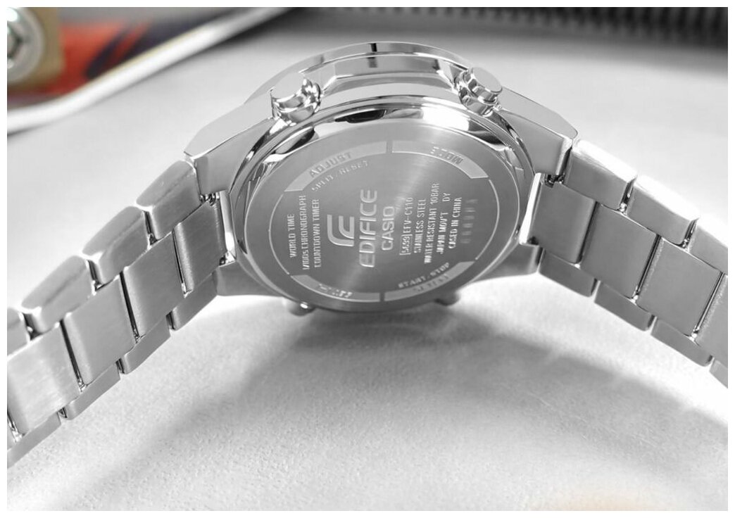 Лучшие цены. Мужские японские наручные часы Casio Edifice EFV-C110D-1A4 с хронографом. Кварцевый механизм с высокой точностью +/- 15 сек в месяц. Неоновый дисплей обеспечивает длительную подсветку в темное время суток после короткого воздействия света. 30 сохраненных имен и телефонных номеров всегда под рукой благодаря встроенной базе данных. Каждая запись может включать в себя текст из 8 букв и 12 цифр. Секундомер с высокой точностью в 1/100 секунды с измерением до 24 часов. Магазины в вашем городе.
