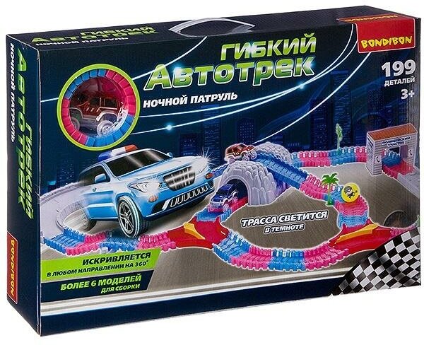 Гибкий автотрек Bondibon "Ночной патруль", светящаяся трасса и машинка, 199 деталей (ВВ2767)