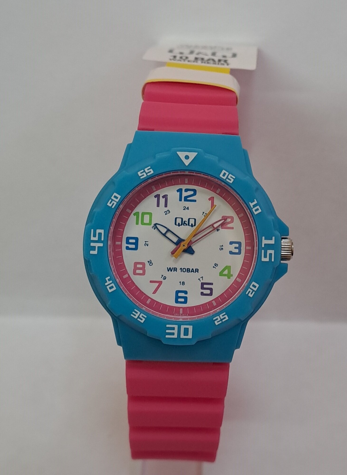 Лучшие цены. Женские японские наручные часы Q&Q VR19-014 [VR19 J014Y]. Кварцевый механизм в высокой точностью +/-20 сек в месяц. Прочное, устойчивое к царапинам, минеральное стекло обеспечит защиту часов от повреждений. Высокая водонепроницаемость 100WR (10 Бар) идеально подходит для плавания с маской и трубкой. Корпус часов сделан из высококачественного пластика. Ремешок каучуковый с классической застежкой – это стильно, удобно и практично. Магазины в вашем городе.