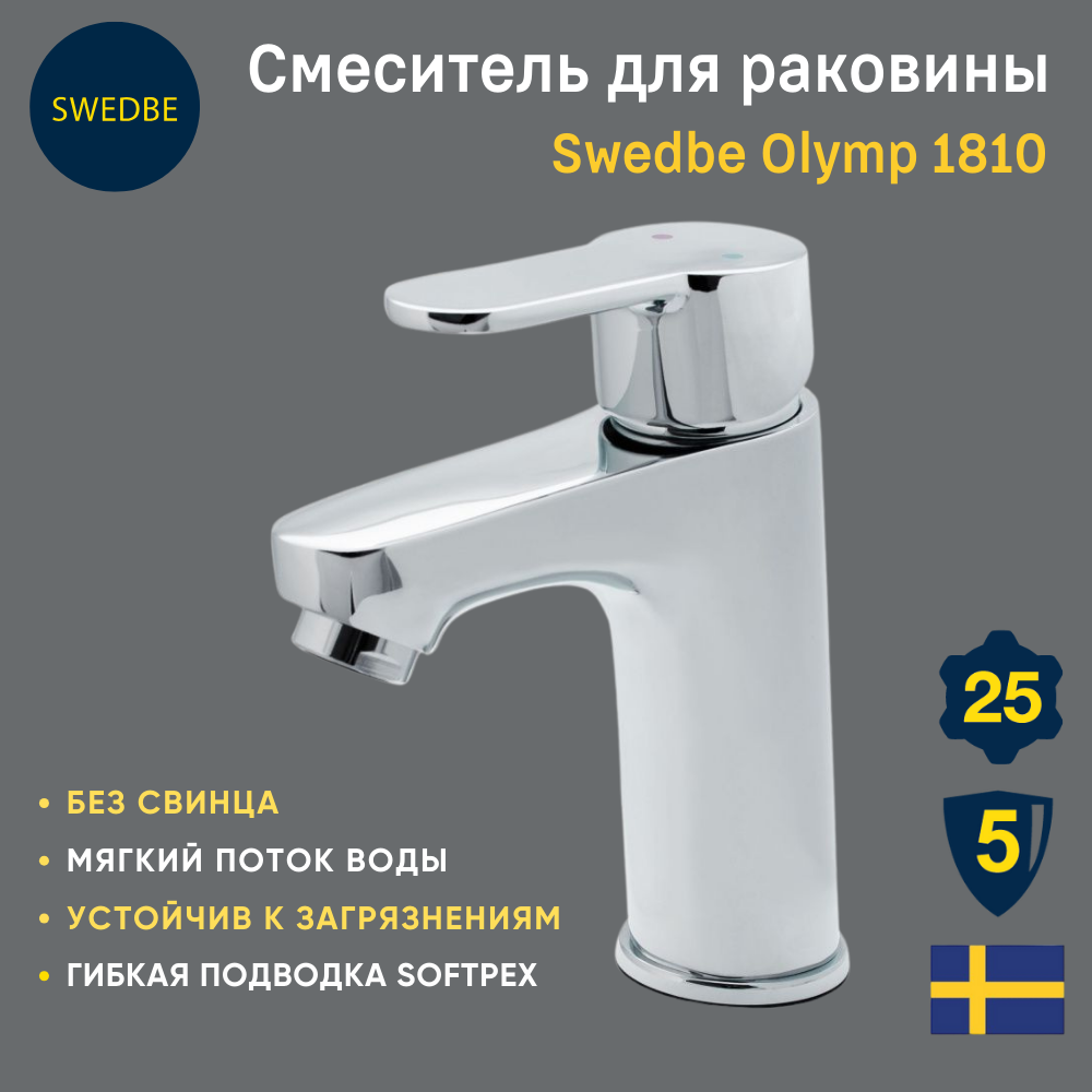Смеситель для умывальника Swedbe Olymp 1810 однозахватный, закругленная ручка, цвет: хром
