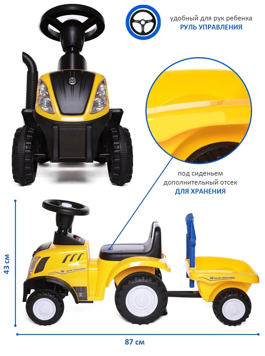 Толокары и каталки Пушкар машина-каталка детская New Holland Tractor Babycare, звуковые эффекты, желтый