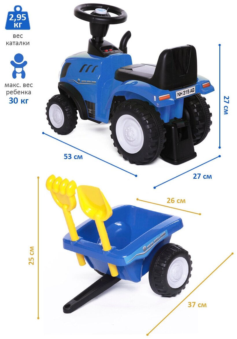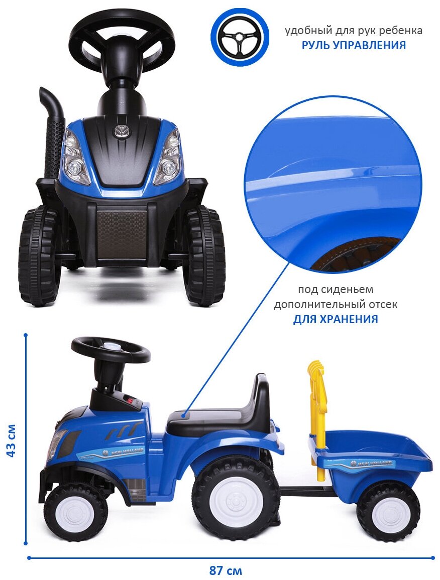 Толокары и каталки Пушкар машина-каталка детская New Holland Tractor Babycare, звуковые эффекты, синий