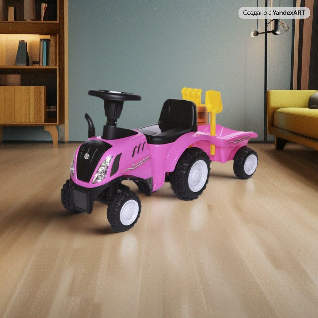 Толокары и каталки Пушкар машина-каталка детская New Holland Tractor Babycare, звуковые эффекты, розовый