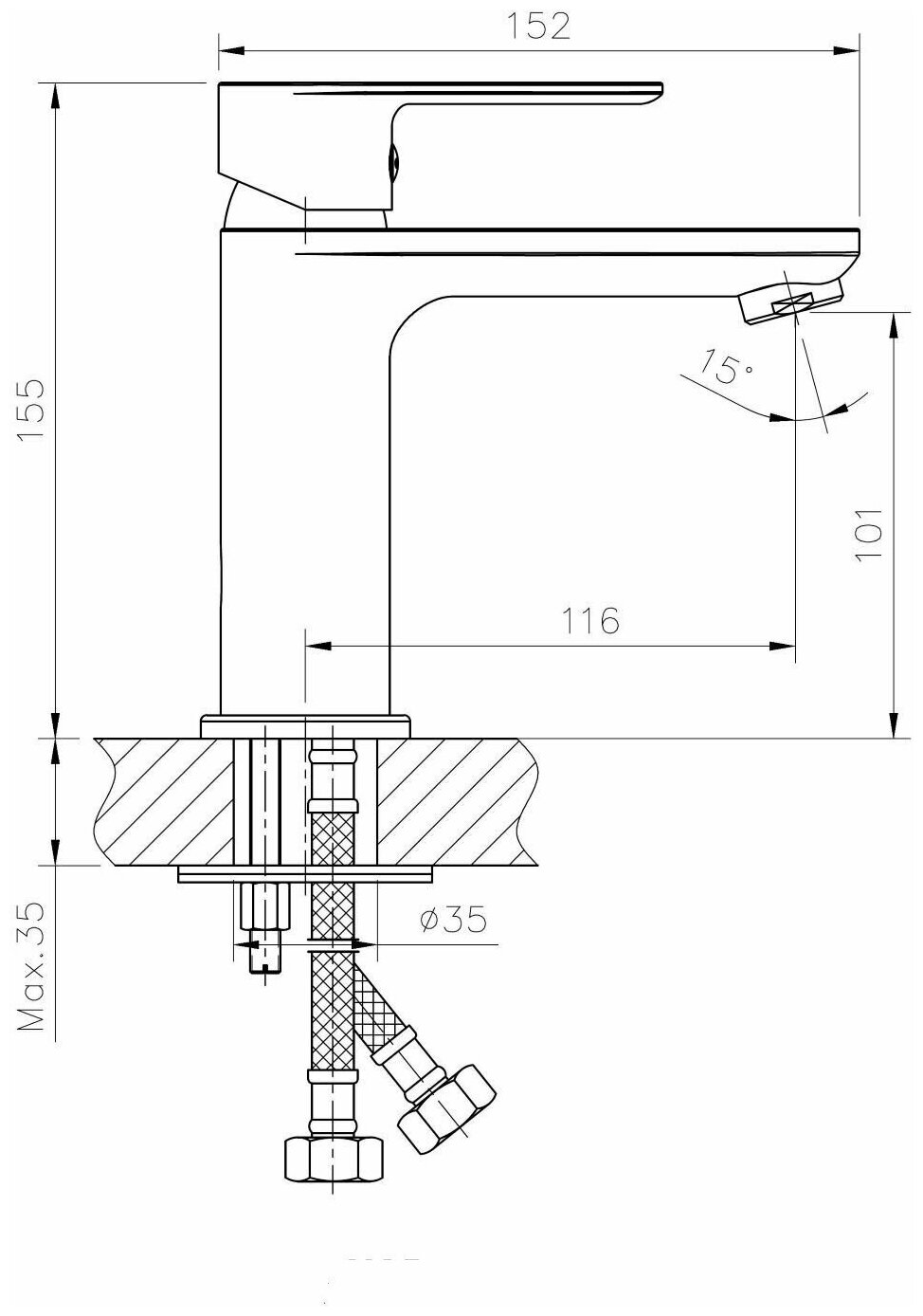 Смеситель для умывальника 35к HB10505 HAIBA б/отв п/шпильку