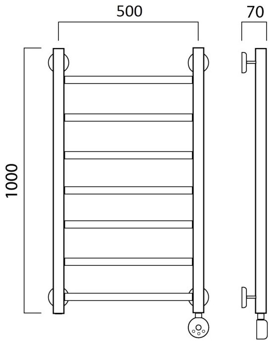 Полотенцесушители Полотенцесушитель электрический Акванерж Прямая 1000х500 мм, 7 перекладин, правое подключение.