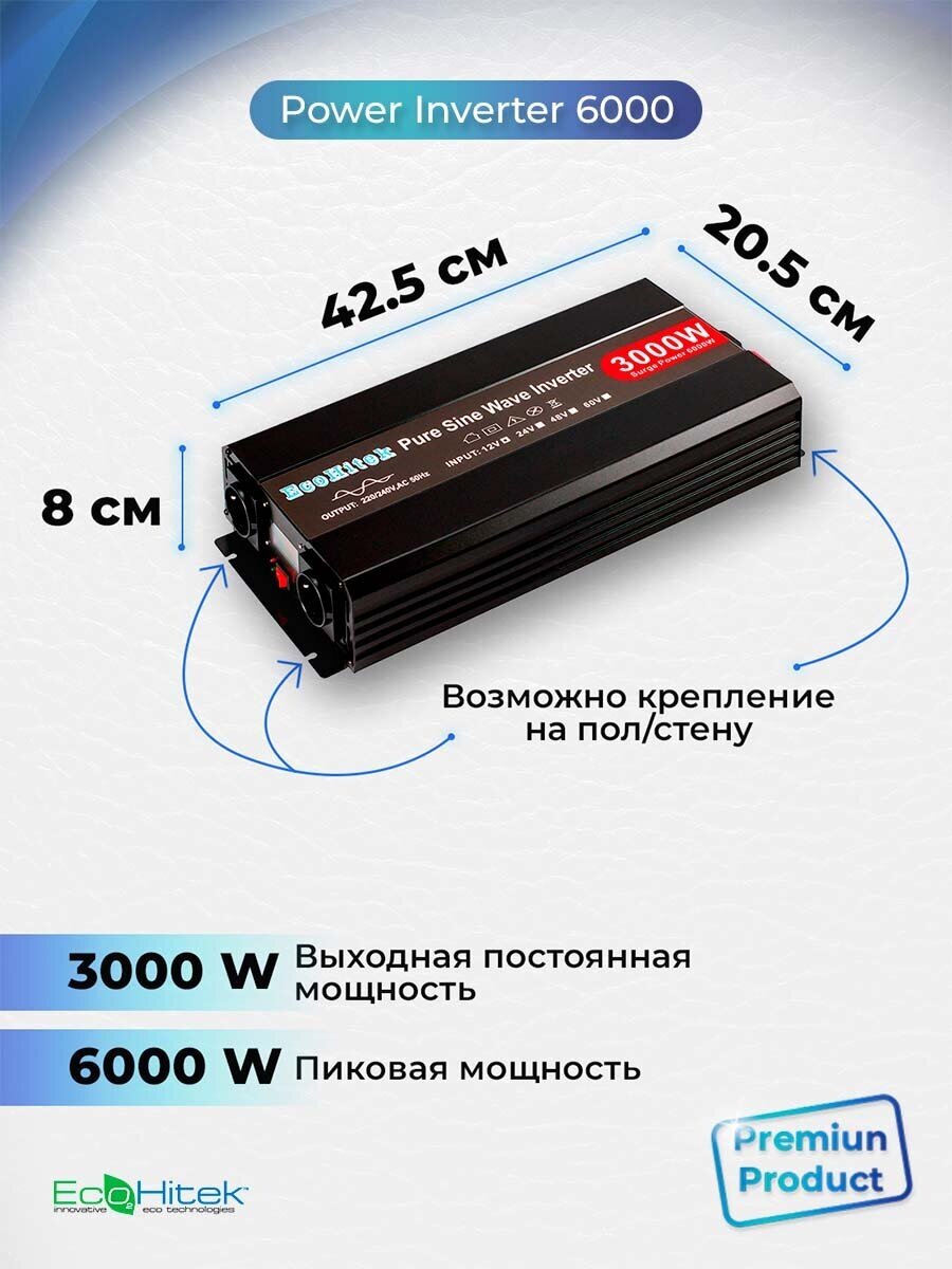 Автомобильные инверторы Power Inverter 6000 EcoHitek Автомобильный инвертор напряжения 12 - 220В (пост нагрузка до 3000 Вт). Подключение приборов, эл. инструмента.