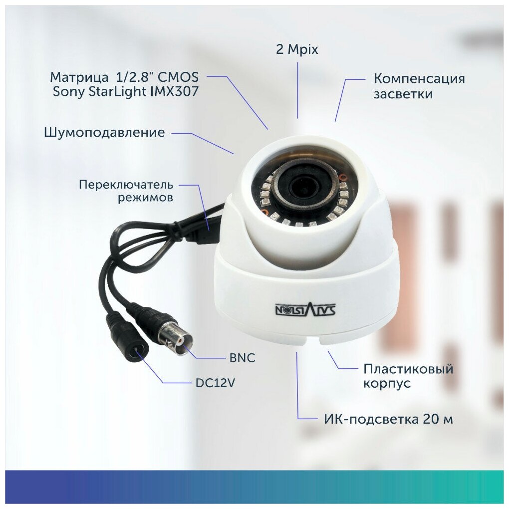 Лучшие цены. Камера видеонаблюдения купольная мультиформатная внутренняя starlight 2 Mpix 1080p AHD TVI CVI CVBS камера старлайт 2.8 mm В комплекте идет инструкция на русском языке! Купольная видеокамера: - разрешение - 2 Mpix; - светочувствительная матрица Sony StarLight; - поддержка форматов: AHD/CVBS; - компенсация встречной засветки; - расширенный динамический диапазон; - шумоподавление. Тип матрицы: 1/2.8" CMOS Sony StarLight IMX307 StarLight: Да Датчик PIR: Нет Процессор: NVP2441H Разрешение: 1920(H) × 1080(V). Магазины в вашем городе.