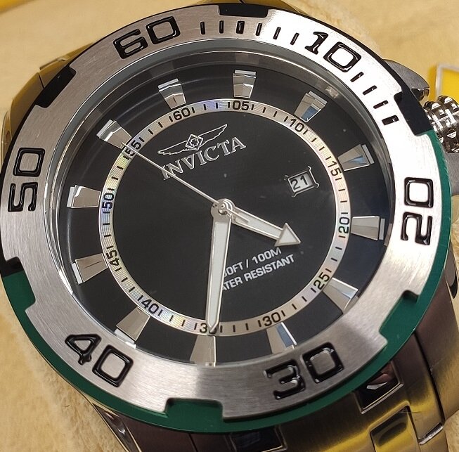 Лучшие цены. Пол: Мужские Механизм: Японский кварцевый TMI (Seiko) PC32 Корпус: Хирургическая сталь 316L / хромированный / безель черно-зеленый Циферблат: Черный , металлический / акценты серебристые , белые Браслет: Стальной , хромированный Стекло: Антибликовое Flame Fusion Crystal Безель: Стационарный Функции: Дайвер. Дата. Центральная секундная стрелка. Люминесцентные стрелки Tritnite. Магазины в вашем городе.