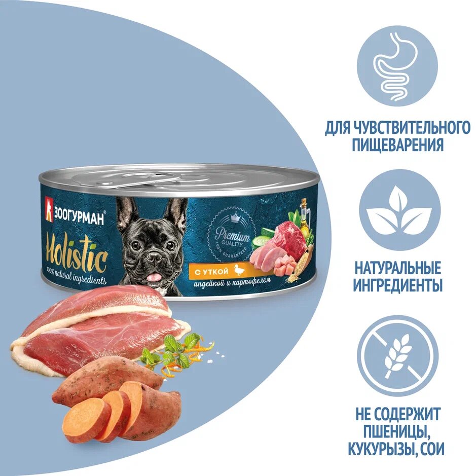 Зоогурман Holistic Консервы для собак с Уткой, Индейкой и Картофелем