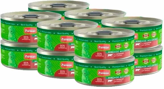 Четвероногий Гурман Мясное ассорти консервированный корм с говядиной для щенков - 100 г (24 шт)