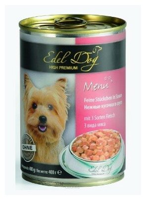 Корм для собак Edel Dog Нежные кусочки в соусе (3 вида мяса) для собак, 0,400 кг