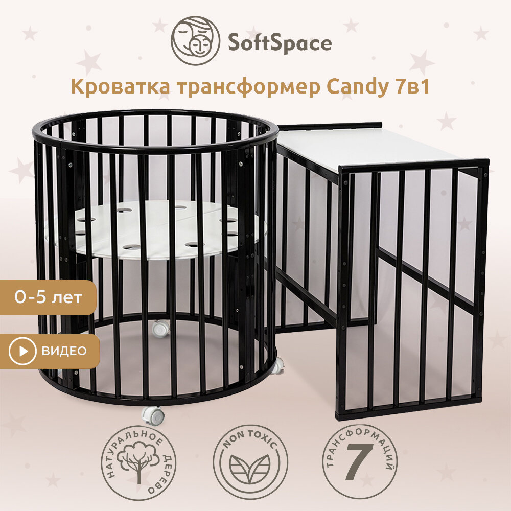 Кроватки Детская кроватка трансформер SoftSpace Candy 7в1, 125x75 см, 75x75 см, Береза, цвет Венге