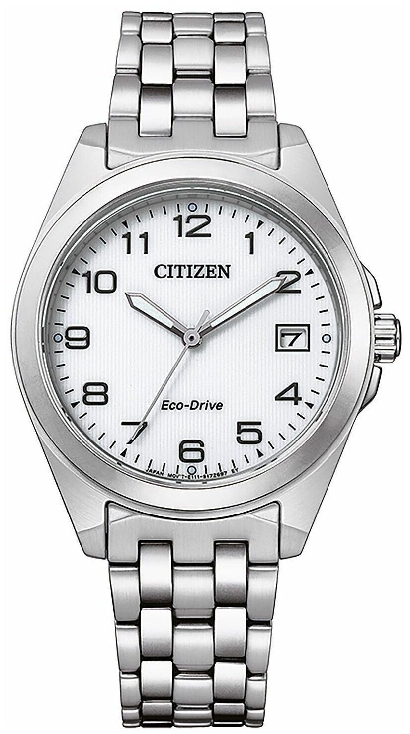 Лучшие цены. • Японский кварцевый механизм с аналоговой индикацией, калибр E111, оснащенный системой питания и подзарядки от солнечных батарей Eco-Drive. • Точность хода с погрешностью не более +/-15 секунд в месяц. • Система Eco-Drive - патентованная технология CITIZEN, заключающаяся в размещении фотоэлементов скрытых под циферблатом и постоянно подзаряжающих аккумулятор часов. Продолжительность автономной работы после полной зарядки аккумулятора до 180 дней. • Центральные часовая, минутная и секундная стрелки. Магазины в вашем городе.