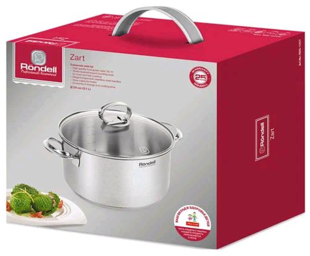 Лучшие цены. Кастрюля с крышкой Rondell RDS-1227 Артикул: 6971764326740 Название товара: Кастрюля с крышкой Rondell RDS-1227 Коммерческий тип: Кастрюля Штрихкод (Серийный номер / EAN): 6971764326740 Вес в упаковке, г: 2530 Ширина упаковки, мм: 260 Высота упаковки, мм: 180 Длина упаковки, мм: 370 Тип: Кастрюля Бренд: Rondell Название модели: RDS-1226 Материал: Алюминиевый сплав Аннотация: Все, что необходимо для создания кулинарных шедевров: навыки, умения, знания, талант. Магазины в вашем городе.
