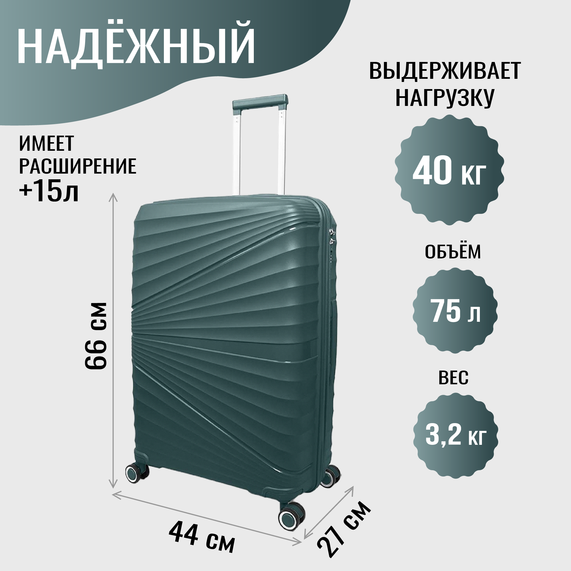 Чемоданы Чемодан на колесах дорожный средний багаж для путешествий мужской m Тевин размер М 64 см 62 л легкий 3.2 кг прочный полипропилен Зеленый темный луч