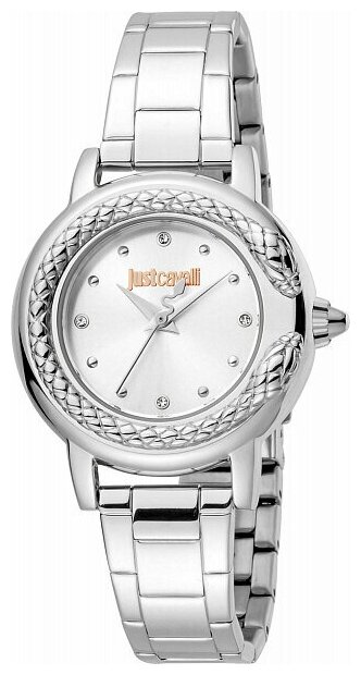 Лучшие цены. Изумительный дизайн часовJust Cavalli JC1L151L0045 обеспечит вас вниманием окружающих на долгое время. Мода, которая доступна. Круглый стальной корпус украшен гравировкой круглой змеи с двумя головами. Циферблат стального цвета выполнен по технологии Sunray (солнечные лучи) и украшен надписьюJust Cavalli цвета розового золота. Метки на циферблате в виде точек, украшены кристаллами Сваровски. Часовая и минутная стрелки, а секундная выполнена еще и в форме змеи. Заводная головка конусообразной формы. Магазины в вашем городе.