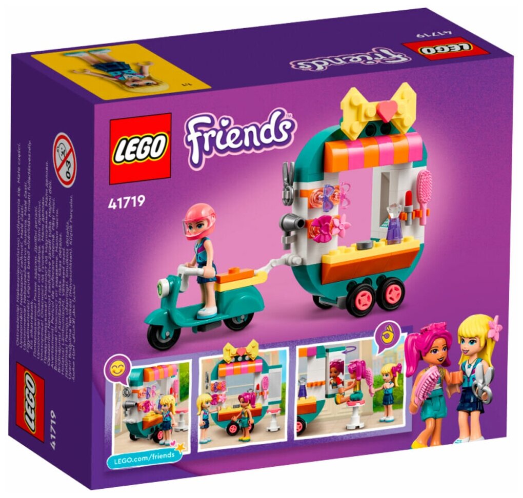 Лучшие цены. Порадуйте маленьких поклонников стиля подарком в любое время из игрового набора LEGO® Friends Mobile Fashion Boutique (41719). Дети в возрасте от 6 лет могут притвориться, что вместе со Стефани преображают жителей Хартлейк-Сити, пока они буксируют мобильный магазин за крутым электрическим самокатом. Забавные аксессуары оживляют игру: - Маленькие стилисты проявляют творческий подход, используя фен, ножницы, щетку, губную помаду и духи. Покупатели также могут купить аксессуары для волос в притворном магазине. Магазины в вашем городе.