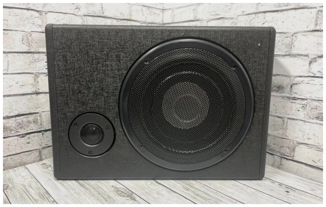 Лучшие цены. Сабвуфер активный напольный 8" (дюймов) можно без проблем установить под сиденье авто. Мощность RMS номинальная 120 Вт. Буфер отлично выдает низкие частоты. Магазины в вашем городе.