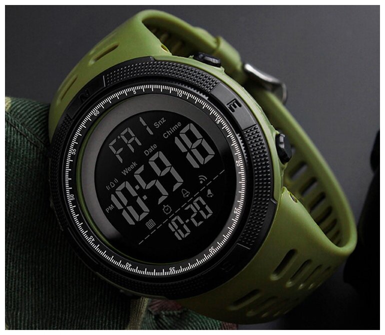 Наручные часы Часы SKMEI 1251 Green Часы спортивные мужские SKMEI 1251, с секундомером, будильником, таймером, водонепроницаемые, скмей