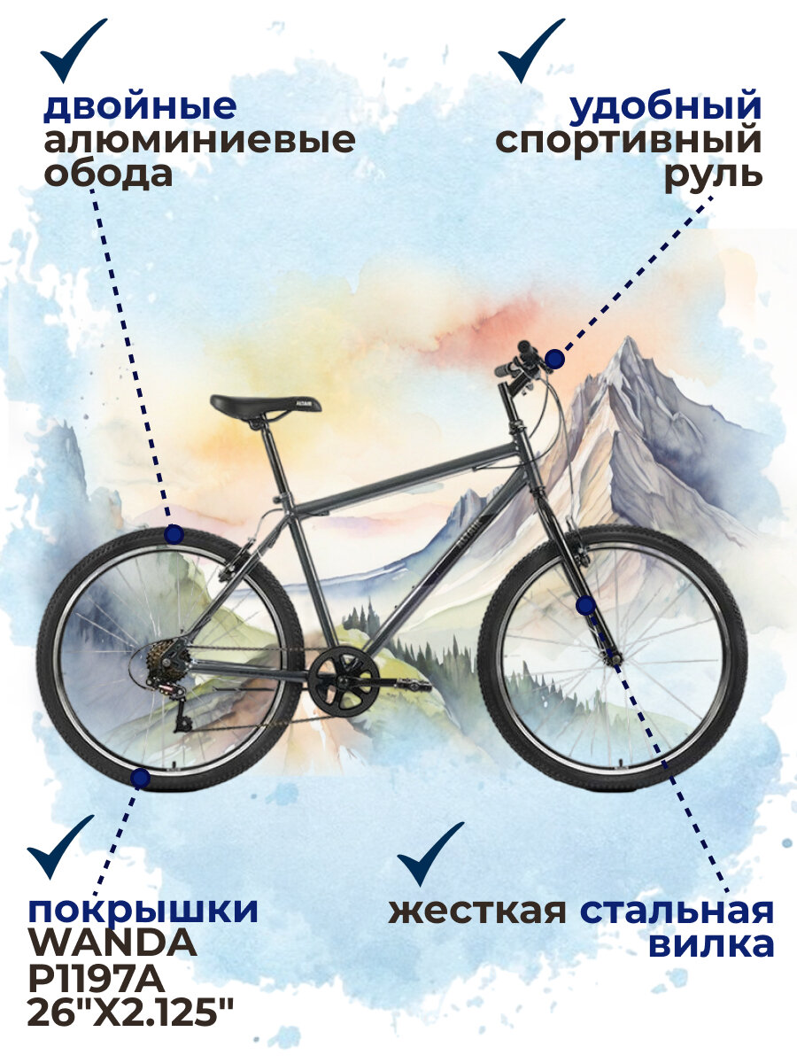 Велосипеды Велосипед горный с колесами 26" Altair MTB HT 26 1.0 серо-черный 7 скоростей, рама 19", 2022 год