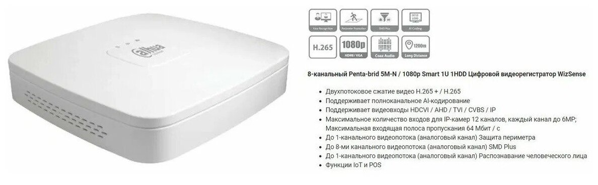 | Видеоканалов | 6 шт (4 аналоговых + 2 IP) |