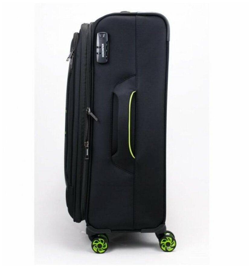 Лучшие цены. Чемодан на колесах Mironpan 50152-M black Чемоданы Mironpan – очень легкие и удобные модели. Изготовлены из полиэстера, крепкого и практичного материала, не пропускает воду. Выдвижная ручка, из устойчивого к коррозии металла, фиксируется в нескольких положениях. Четыре двойных облегченных колеса из ударопрочного пластика делают транспортировку чемоданов очень легким. Основное отделение оснащено упругими ремнями на клипсе, надежно фиксирующими вещи, на его крышке расположены тканевые карманы на молнии. Магазины в вашем городе.