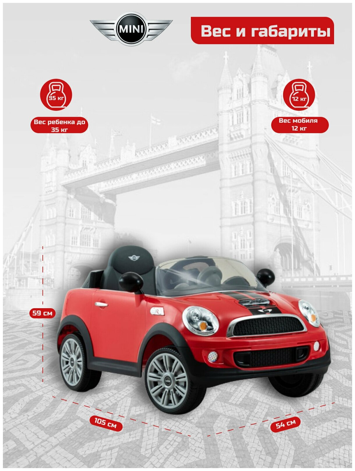 | Функции и возможности | дистанционное управление / ремни безопасности / фары (световые эффекты) / клаксон (сигнал) / звуковые эффекты / радио / mini-Jack 3.5 мм |