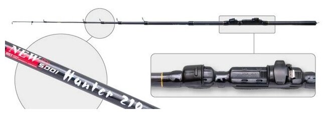 Лучшие цены. New Hunter – компактный телескопический спиннинг. Идеально подходит для путешествий и походов на природу, когда рыбалка является дополнением к отдыху. Обладает средним строем, что позволяет выполнить точный заброс, а при вываживании хищника быстро его утомить. Оснащен облегченными кольцами Kujira XR Long Super Hard ZrO2 (1600-1800H, kg/mm2). Катушкодержатель с механизмом быстрого крепления. Магазины в вашем городе.