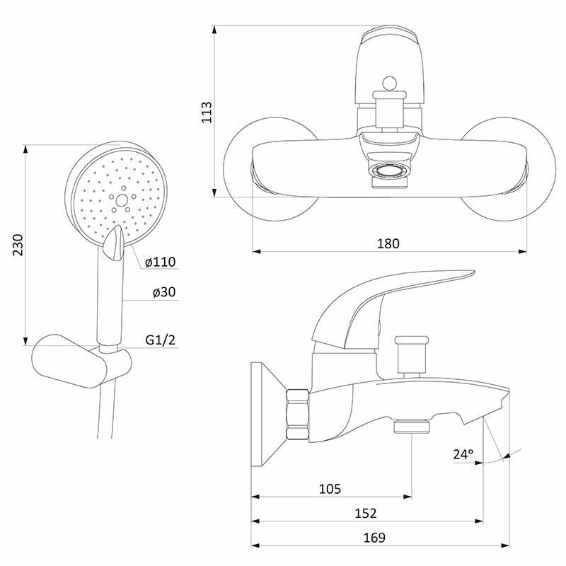 | Функции и возможности | ручной душ (душевая лейка) / переключение подачи воды / автопереключение душ / ванна |