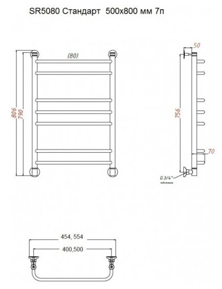 Полотенцесушитель Стандарт полотенцесушитель 500х800 мм /7п/