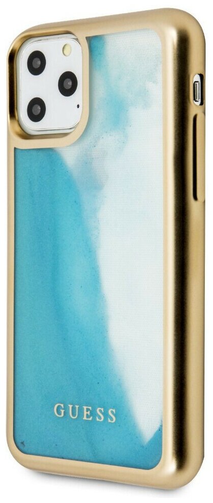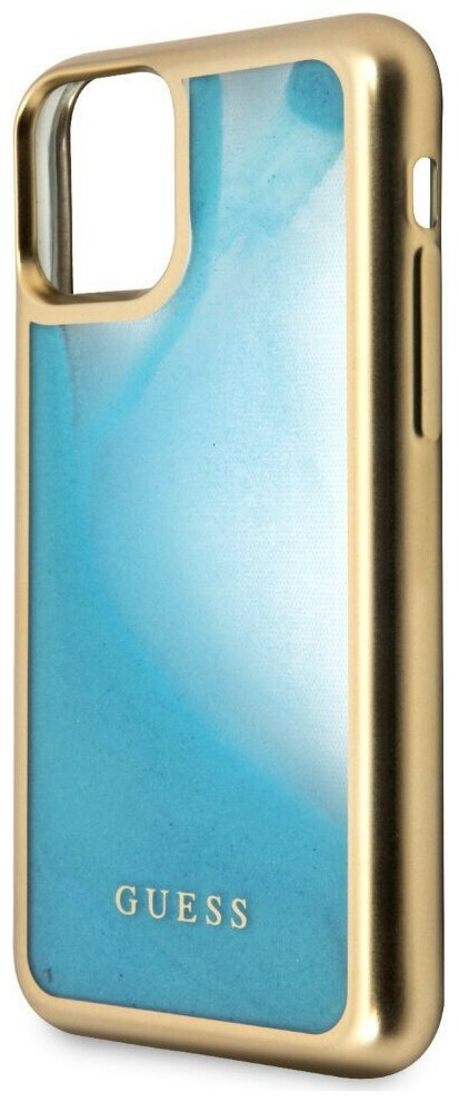 Чехол Чехол CG Mobile Guess Liquid glitter Glow in dark sand hard для iPhone 11 Pro, цвет Золотой/Голубой (GUHCN58GLTRBL)
