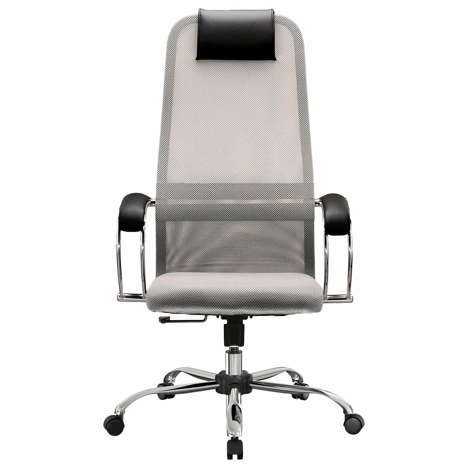 Персональные компьютеры Кресло офисное метта "SU-B-8" хром, ткань-сетка, сиденье мягкое, светло-серое