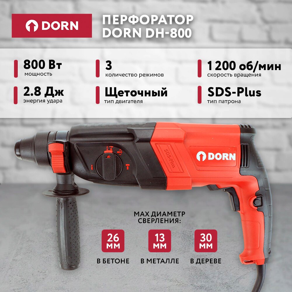 Перфораторы Перфоратор DORN DH-800, 800 Вт 2,8 Дж