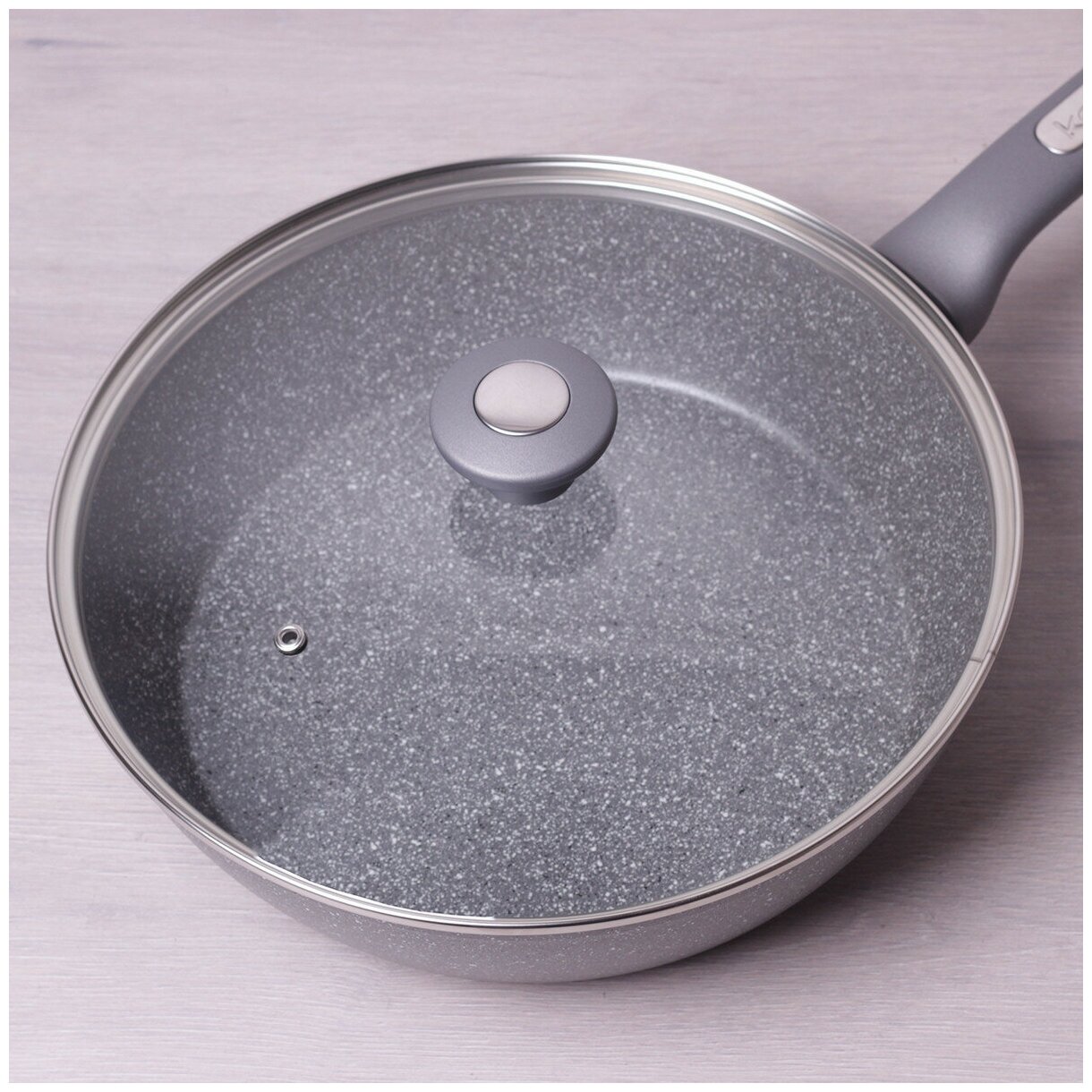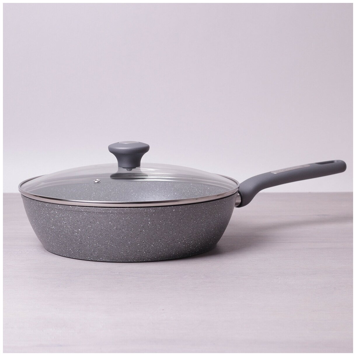 Сотейник 28 см. из алюминия с крышкой Kamille KM-4277GR с мраморным покрытием (28 см. / серый)