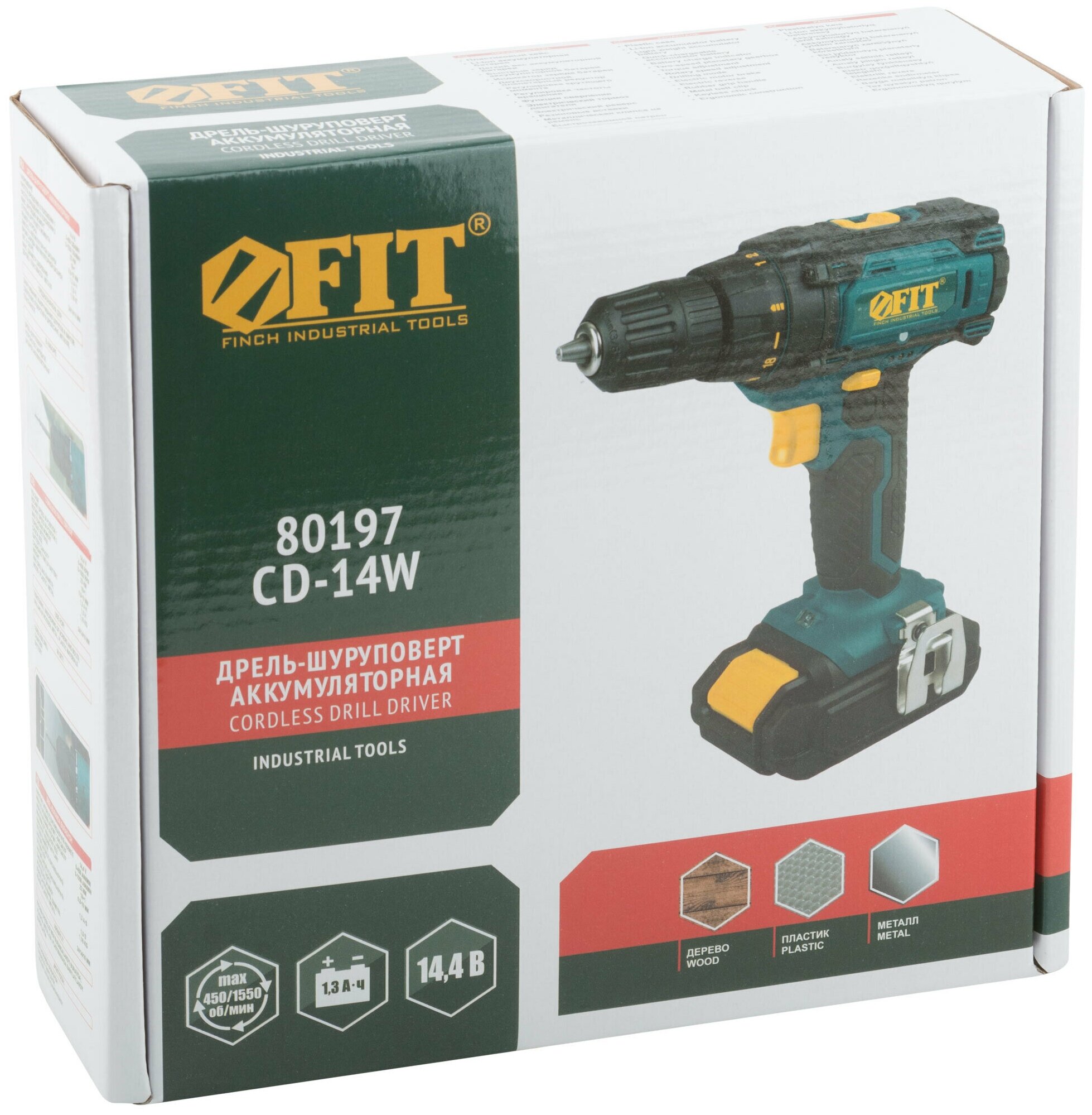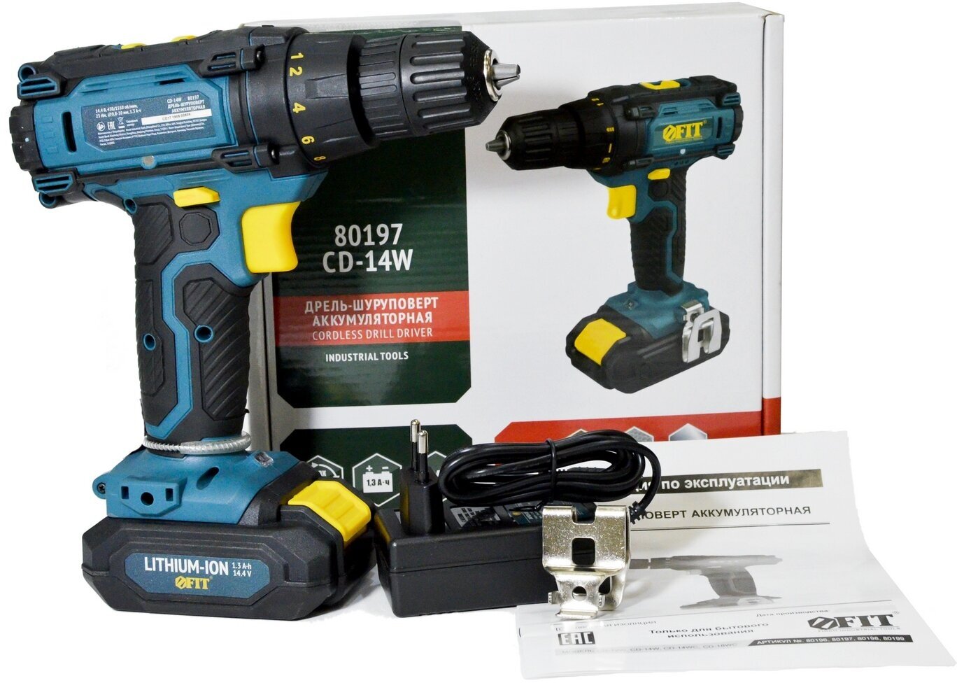 Дрель/шуруповерт Дрель-Шуруповерт акк. 14,4 В, 0-450/1550 об/мин, 23,0 Нм, 1 (Li-Ion) 1,3 Ач, 1,5 ч., рез. накл., коробка 80197