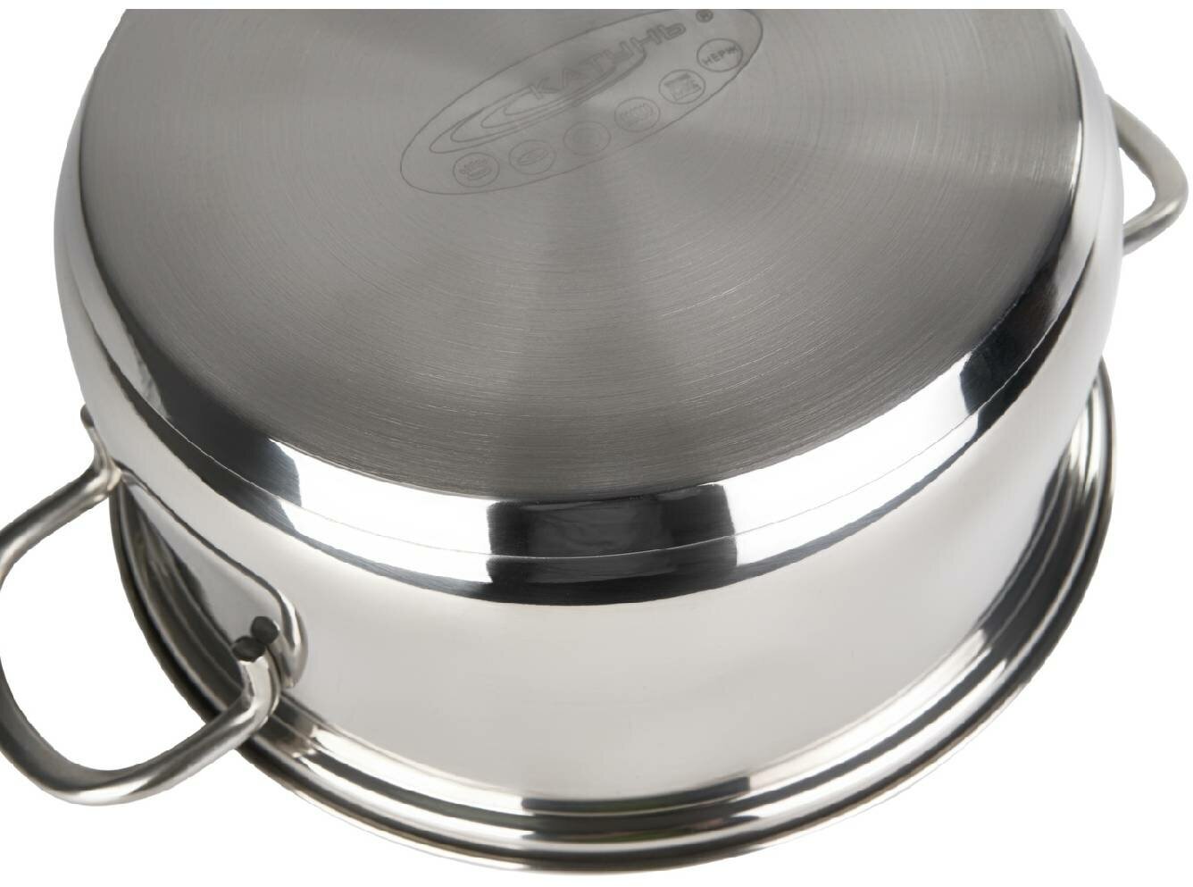 Лучшие цены. Кастрюля Лира КТ-CP-0022 грушевидной формы прошло зеркальную наружную полировку и, без сомнения, станет предметом гордости домашнего или профессионального кулинара. Прутковые ручки прикреплены по технологии точечной сварки. Толщина стенок составляет 0, 5 мм, дна — 2 мм. Термоаккумулирующее дно кастрюли, подходящей для любых видов плит, представляет собой многослойную конструкцию с алюминиевой пластиной. Магазины в вашем городе.