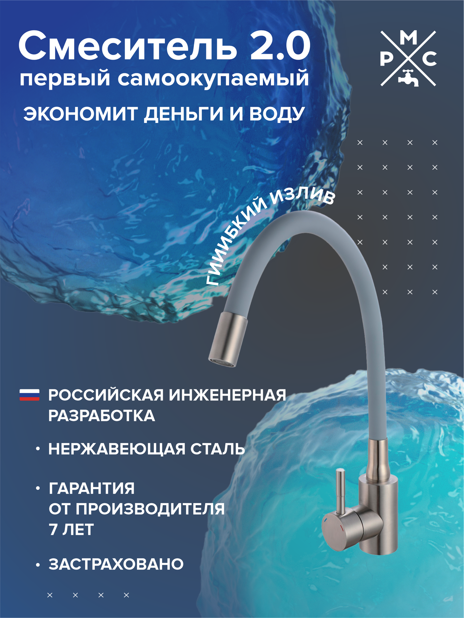 Смеситель для кухни РМС SUS124W-016F,нержавеющая сталь