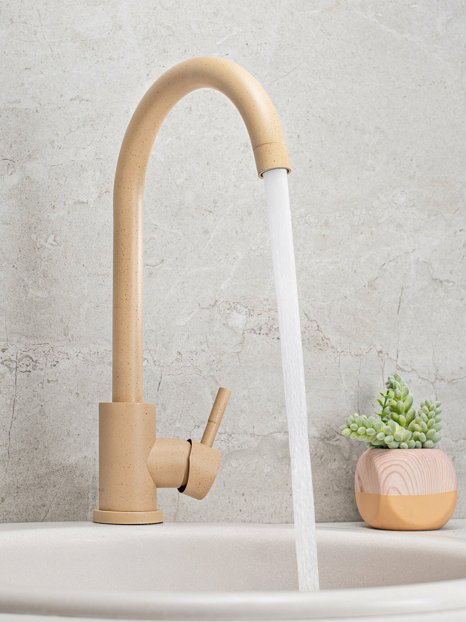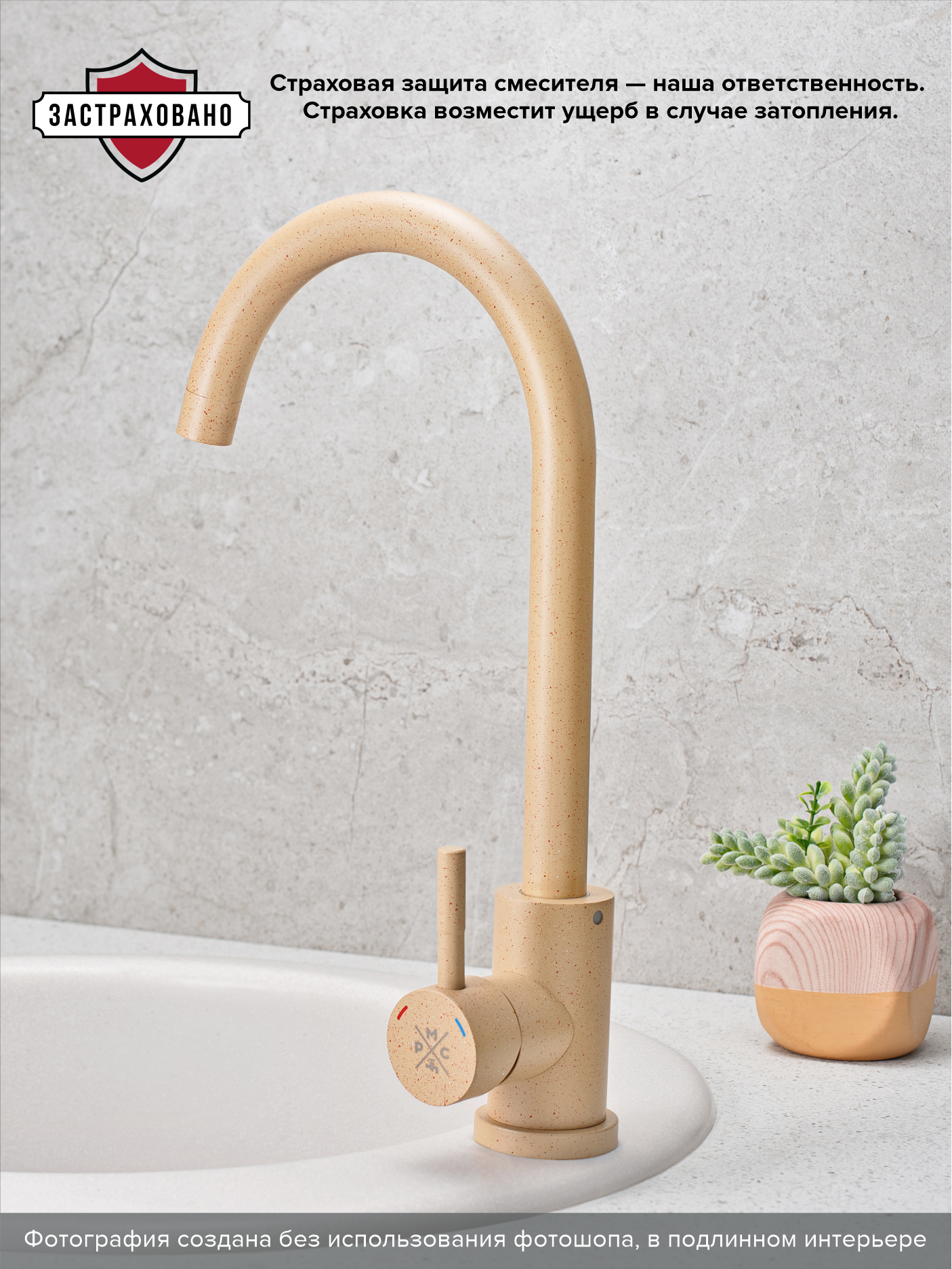 Лучшие цены. Стильный и практичный однорычажный смеситель для кухни из нержавеющей стали с высоким поворотным изливом прекрасно подойдет для мойки любого размера. Смеситель покрыт надежной и стойкой краской, выполнен в индивидуальной окраске, на корпус смесителя песочного цвета нанесены мелкие черные и белые вкрапления, текстура покрытия смесителя напоминает камень. При производстве смесителей ТМ РМС используются только высококачественные материалы. Магазины в вашем городе.