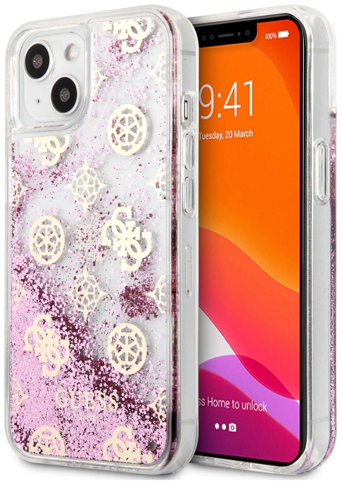 Чехлы для мобильных телефонов Guess для iPhone 13 mini чехол Liquid Glitter Peony Hard Pink
