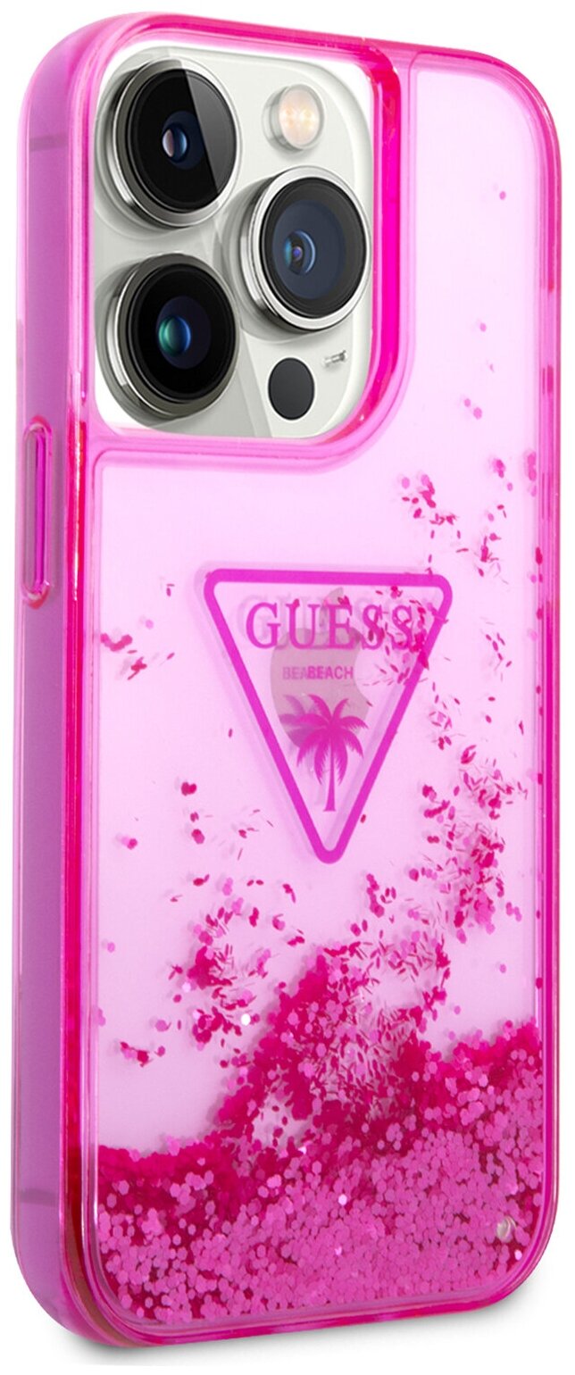 Чехлы для мобильных телефонов Guess для iPhone 14 Pro Max чехол Liquid Glitter Triangle logo Hard Translucent Fuschia