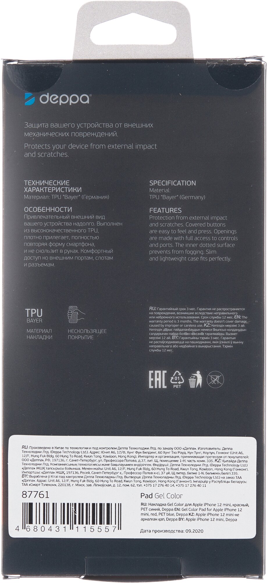 Чехлы для мобильных телефонов Чехол Gel Color для Apple iPhone 12 mini, красный, PET синий, Deppa