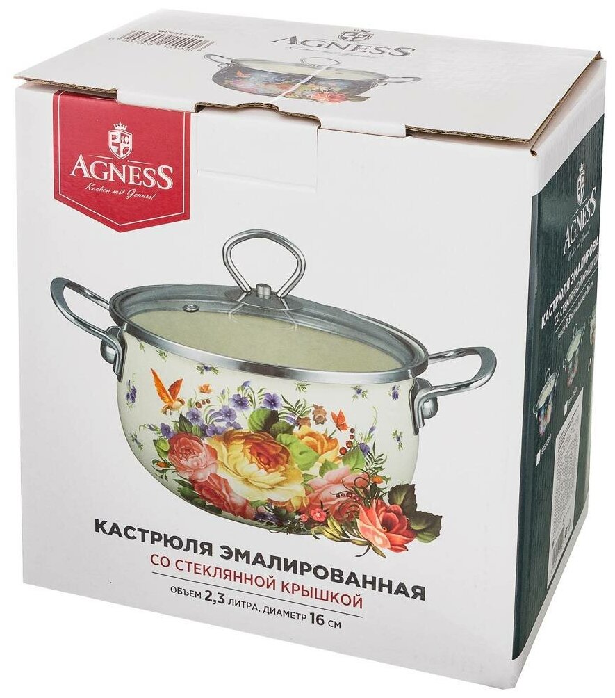 Лучшие цены. Кастрюля эмалированная со стеклянной крышкой, 2,3л, диаметр 16 см высота 12 см Agness. Магазины в вашем городе.