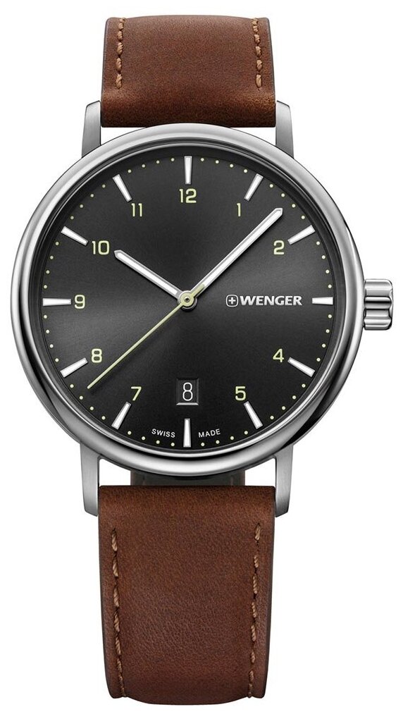 Лучшие цены. Швейцарские наручные часы Wenger 01.1731.115. Коллекция Urban Classic. Мужские. Корпус из нержавеющей стали, циферблат чёрный. Диаметр корпуса 40 мм. Кожаный ремешок с классической застежкой. Окошко даты. Минеральное стекло с сапфировым покрытием. Рифленая заводная головка. Водозащита 100м (10 АТМ). Гарантия 3 года. Wenger – известная швейцарская компания, производитель часов и товаров для путешествий, отметившая своё 125-летие в 2018 году. Магазины в вашем городе.