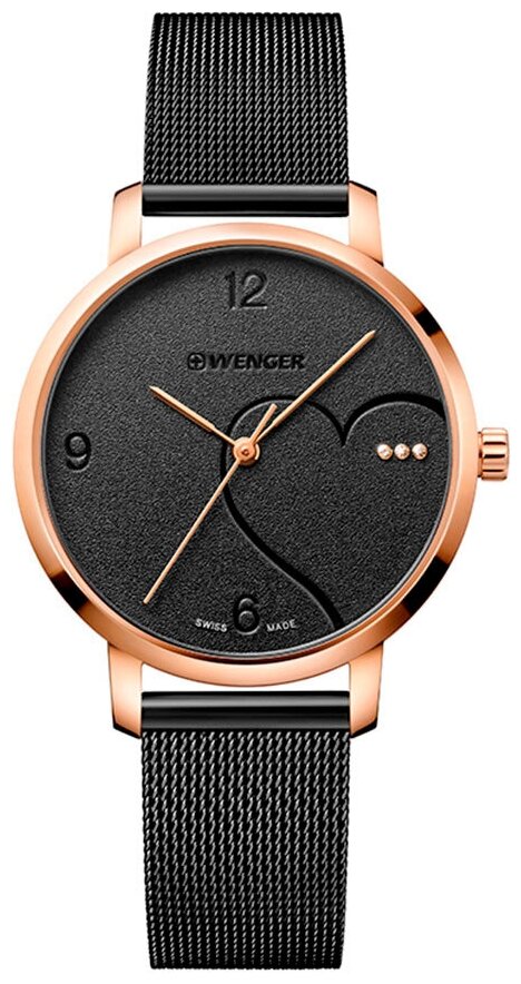 Лучшие цены. Швейцарские наручные часы Wenger 01.1731.113. Коллекция Metropolitan Donnissima. Женские. Корпус и браслет из нержавеющей стали с PVD покрытием, циферблат чёрный. Диаметр корпуса 38 мм. Браслет миланского плетения. Минеральное стекло с сапфировым покрытием. Рифленая заводная головка. Водозащита 100м (10 АТМ). Гарантия 3 года. Wenger – известная швейцарская компания, производитель часов и товаров для путешествий, отметившая своё 125-летие в 2018 году. Магазины в вашем городе.