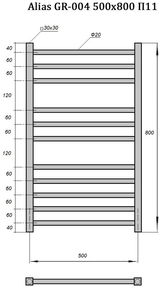 Полотенцесушитель Полотенцесушитель GROIS Grois Alias GR-004 500х800 П11 (3+3+5) RAL9003 белый матовый