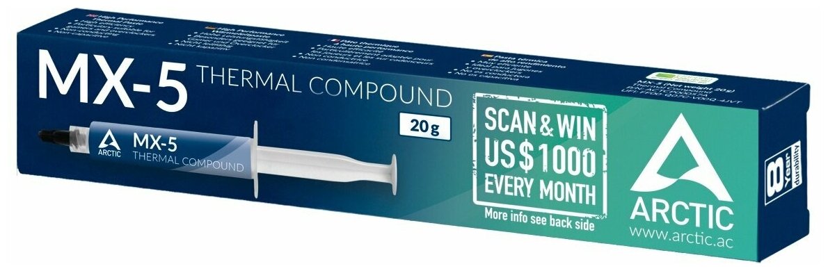 Лучшие цены. Высокая теплопроводность Поверхности процессорных микросхем и оснований кулеров покрыты микроскопическими вмятинами; Термопаста MX-5 от ARCTIC состоит из микрочастиц углерода, заполняющих эти полости. Это приводит к высокой теплопроводности, гарантируя эффективное рассеивание тепла от CPU, GPU или компонентов силовых полупроводников. Безопасное применение В отличие от паст на основе оксидов металлов или жидкого металла, ARCTIC MX-5 не является ни электропроводной, ни емкостной. Магазины в вашем городе.
