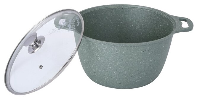 "Кастрюля с антипригарным покрытием со стеклянной крышкой Kukmara (Фисташковый мрамор) кмф62-1а, 6 л"