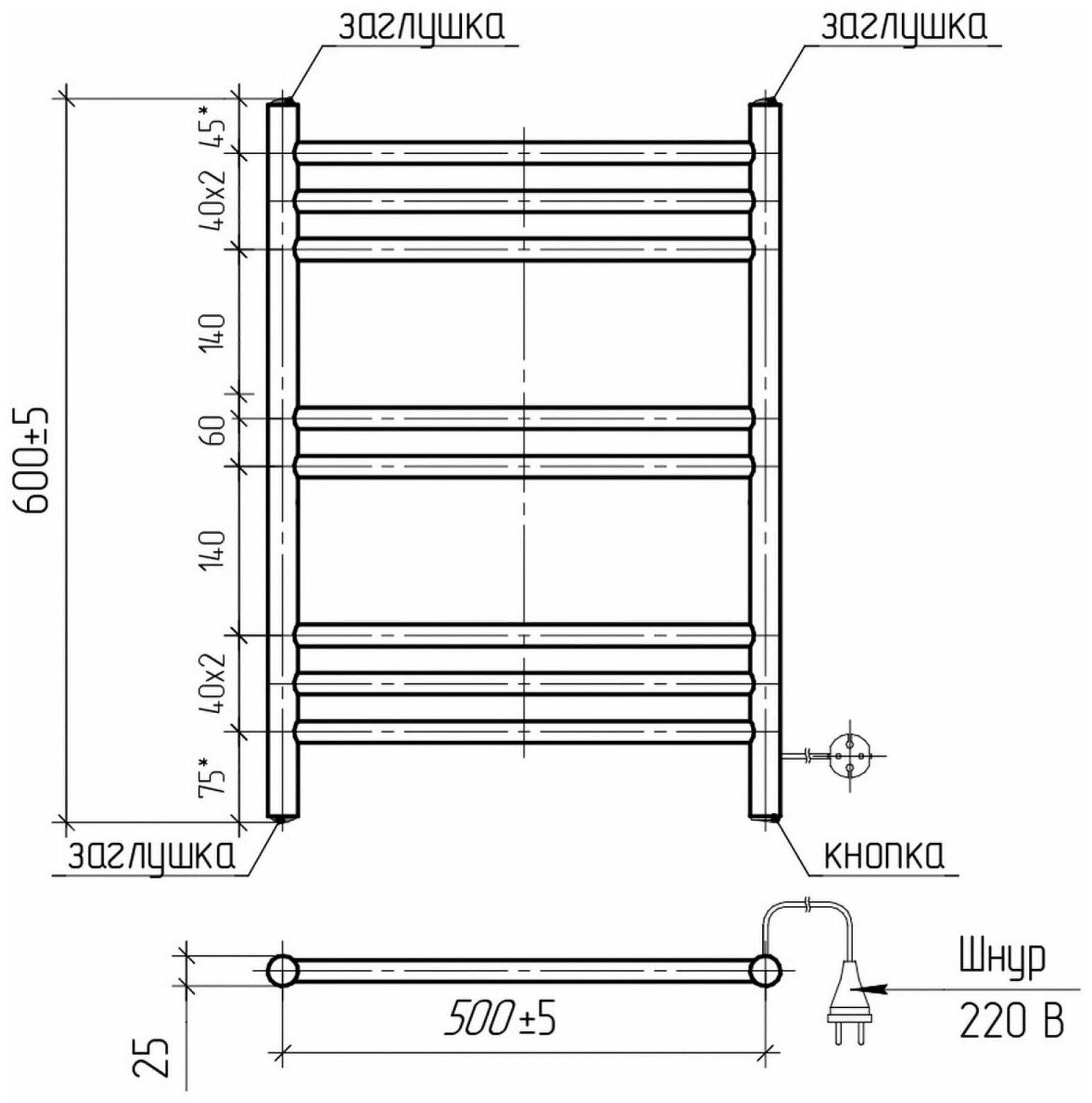 Лучшие цены. Характеристики: Высота: 60 см Межосевое расстояние: 50 см Ширина: 52.5 см Количество перекладин: 8 Коллекция: Богема Тип: электрический Форма: лесенка Направление подключения: нижнее; справа С боковым подключением: нет Мощность: 85 Вт Группировка перекладин: да Поворотный: нет Полка в комплекте: нет Материал: нержавеющая сталь Подключение: электропровод с вилкой Монтаж: подвесной Цвет: хром Гарантия на полотенцесушитель: 12 мес Страна происхождения бренда: Россия Теплоноситель: греющий кабель Оснащение. Магазины в вашем городе.