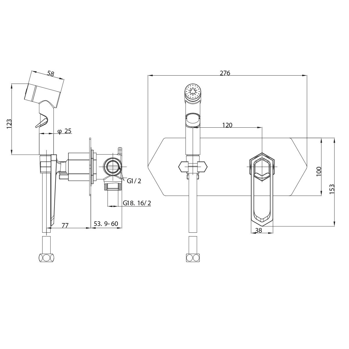 Смеситель Lemark Prizma LM3919C с гигиеническим душем встраиваемый