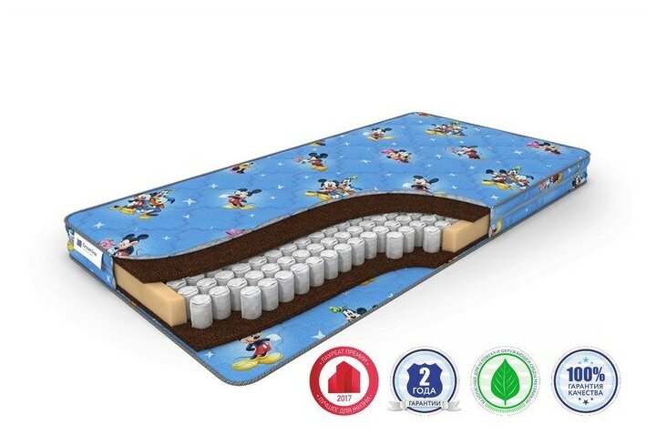 Лучшие цены. комфортный детский матрас из кокосовой койры на пружинном блоке TFK. Симметричный матрас из натуральной кокосовой койры на основе независимого пружинного блока TFK. Каждая пружина изолирована в отдельный чехол, таким образом она не имеет влияния на соседние. За счет такой конструкции достигается хороший комфортный и комфортный эффект. Кокосовая койра - жесткий, дышащий, гипоаллергенный, экологически чистый, износоустойчивый материал, хорошо вентилируется и не впитывает запахи. Магазины в вашем городе.
